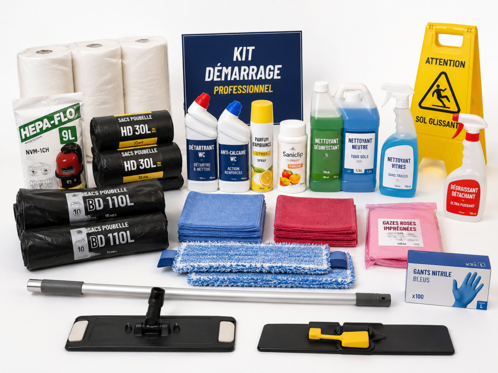 Découvrez nos packs de produits prêt à l’usage pour vous lancer ou compléter vos prestations de nettoyage professionnel.